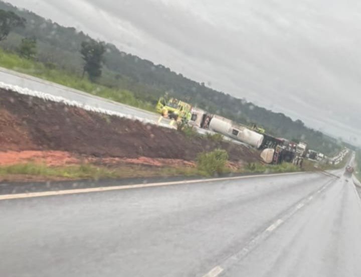 Uma carreta-tanque tombou na madrugada desta segunda-feira (9) no km 568 da BR-163, no município de Nova Mutum, a cerca...