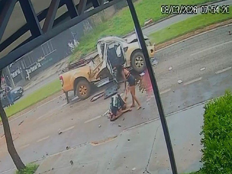 Uma caminhonete bateu violentamente contra dois postes de energia na Avenida Noêmia Dalmolin, em Sorriso, a 378 km de Cuiabá,...