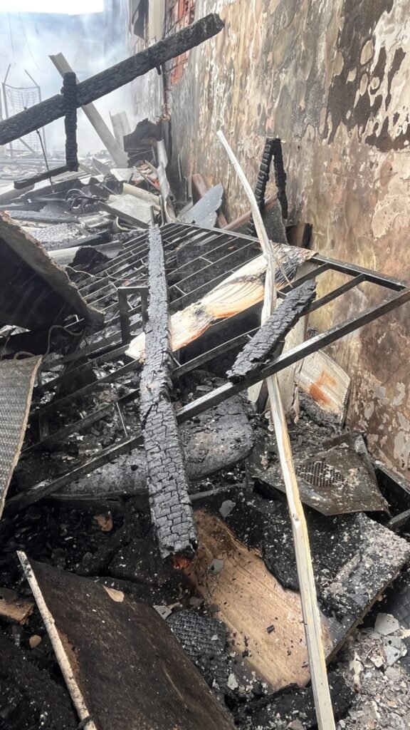 A equipe da 6ª Companhia Independente Bombeiro Militar foi chamada por volta das 11h45 e, ao chegar ao local, encontrou o imóvel já totalmente tomado pelas chamas. Houve colapso completo da estrutura e perda total dos materiais armazenados.
